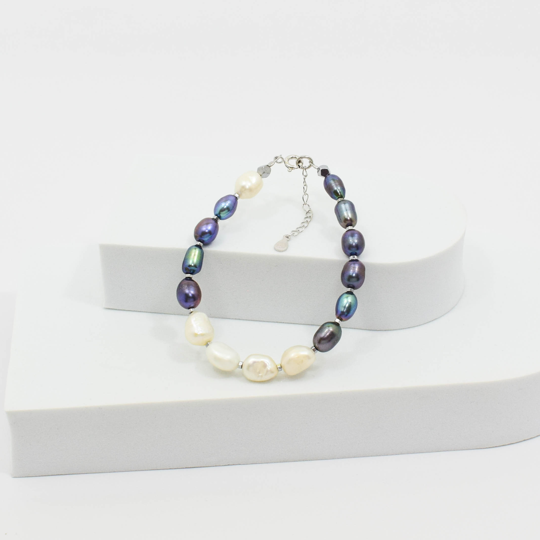 Bratara poate forma un set cu colierul, vezi aici: https://letitia-bijuterii.ro/magazin/colier-argint-925-perle-de-cultura-albe-si-rainbow-hematit-182/