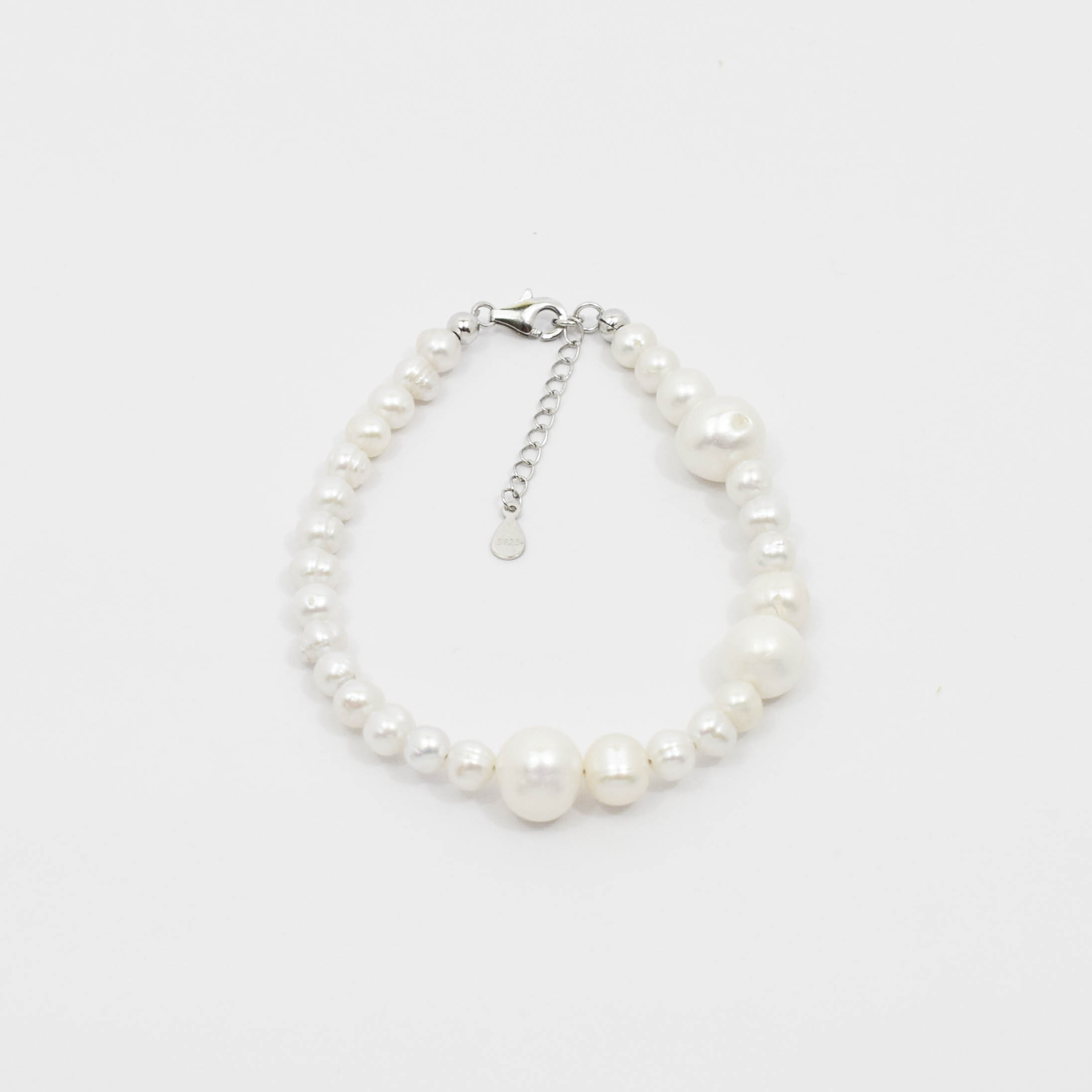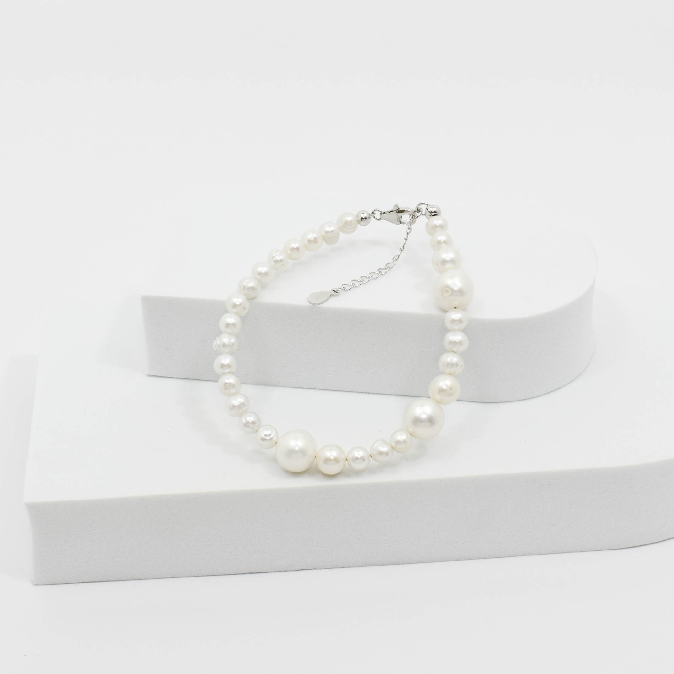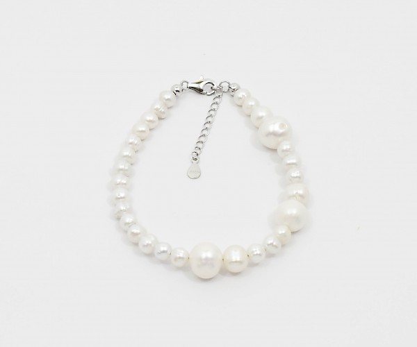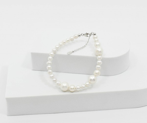 Bratara cu perle de cultura albe in trei dimensiuni si argint 925.