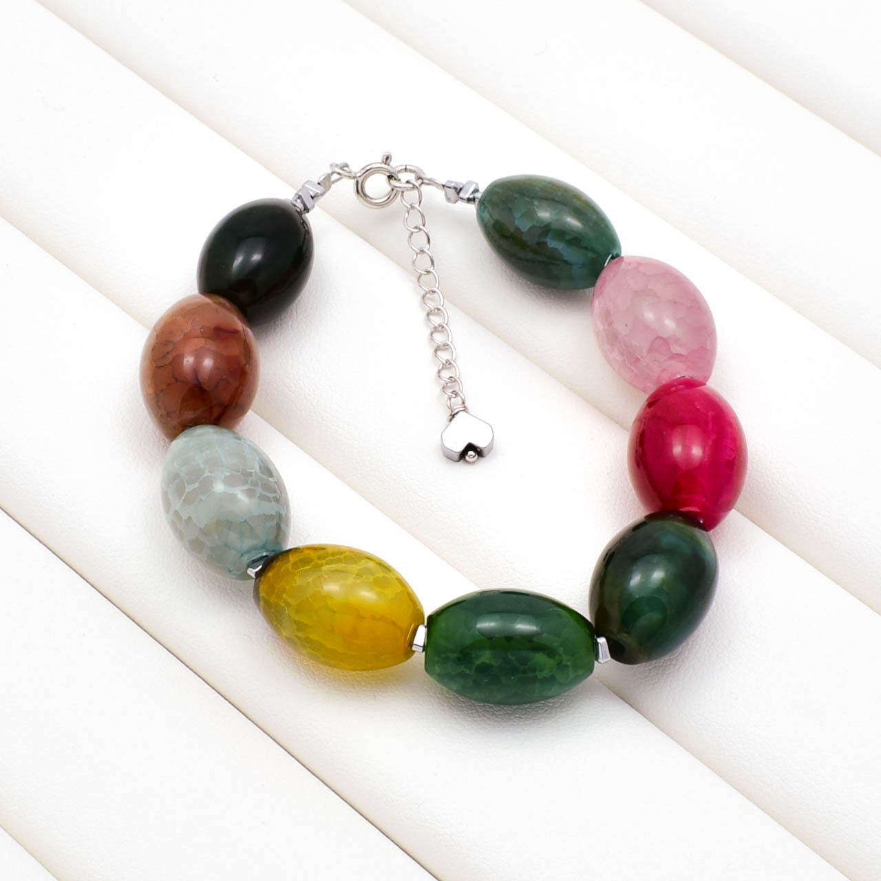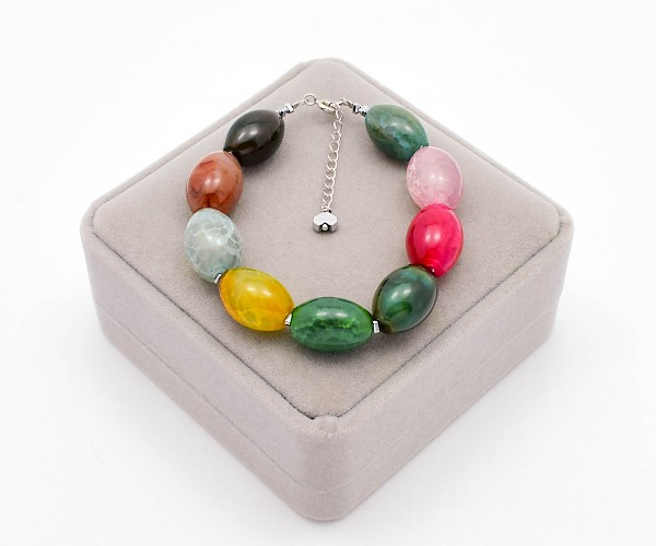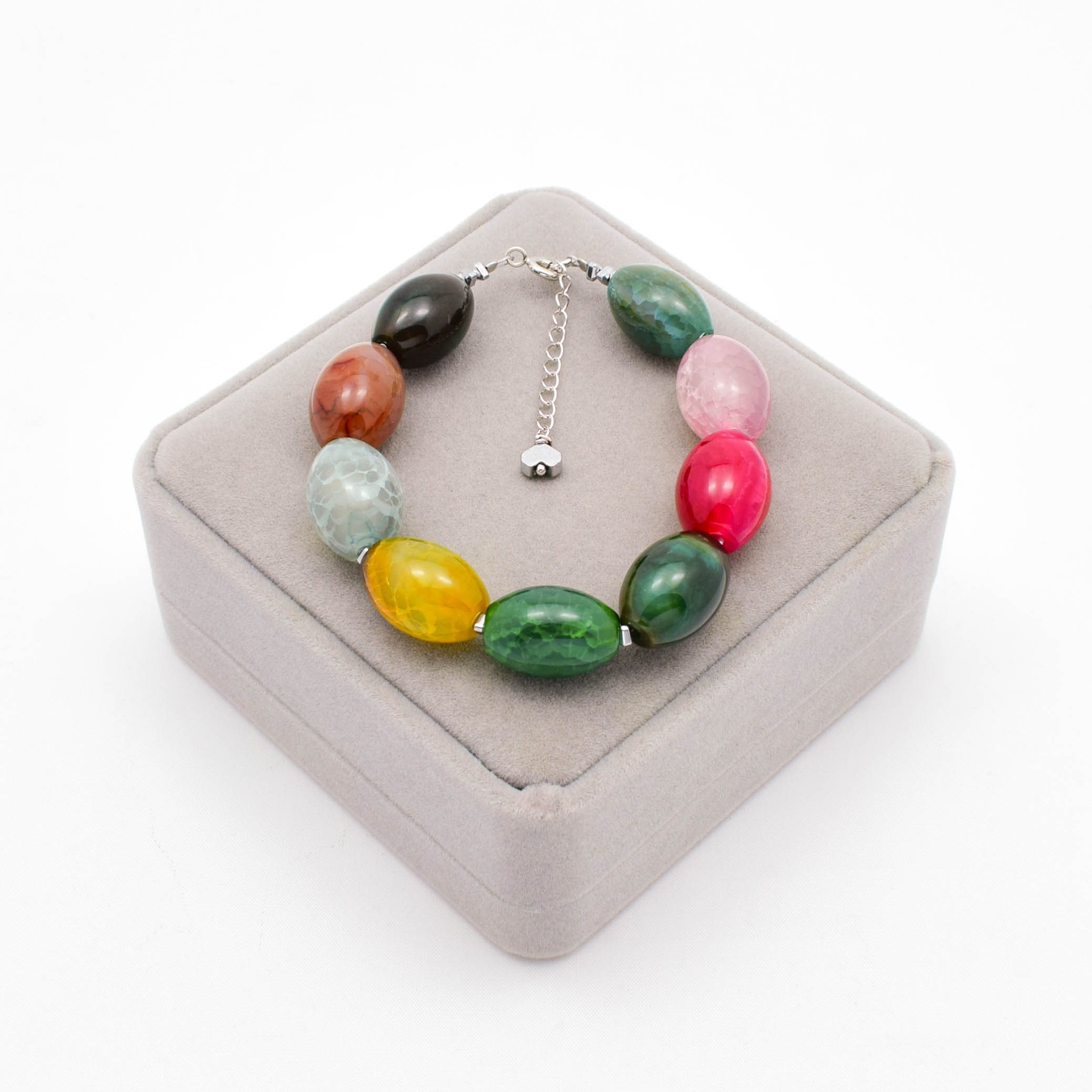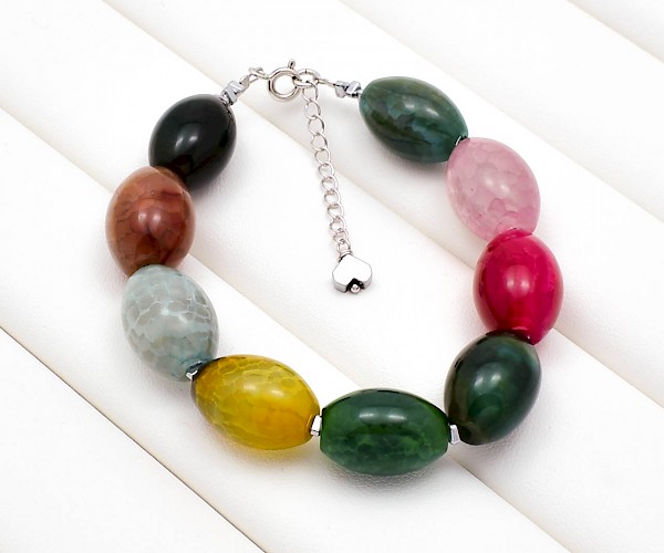 Bratara cu agate colorate, hematit electroplacat si argint 925.