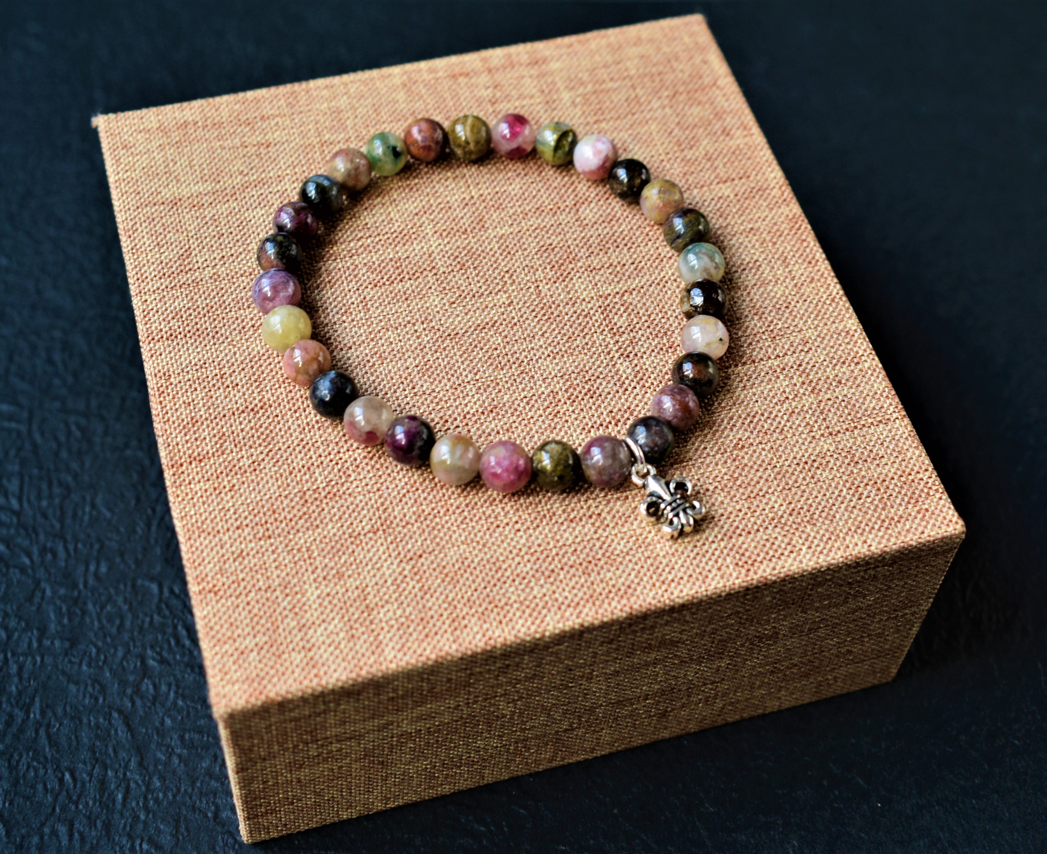 Bratara pe guta elastica, din turmalina si argint 925.