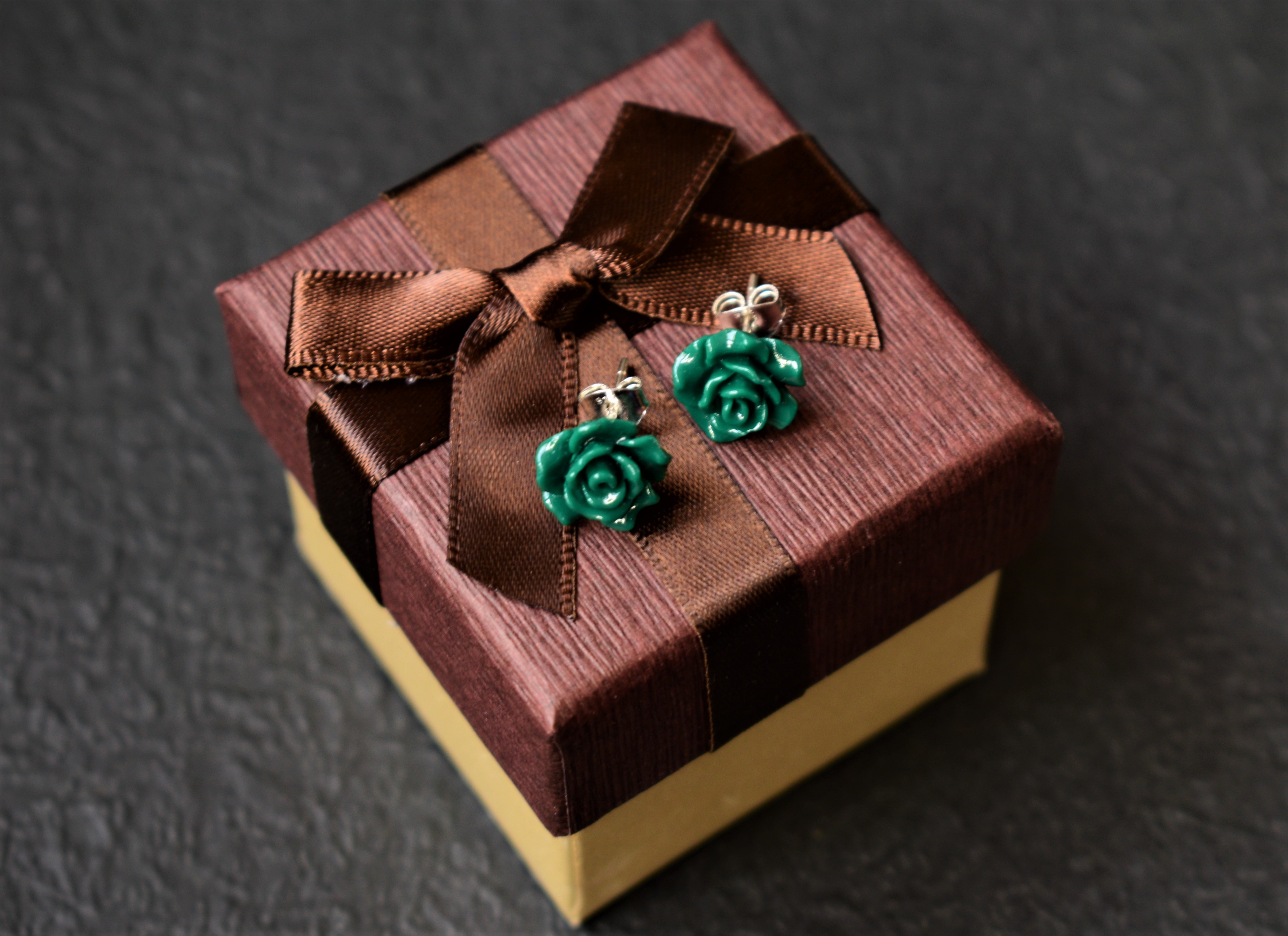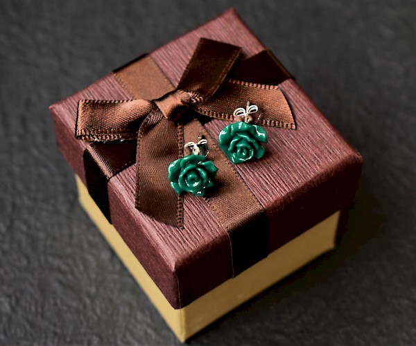 trandafiri verzi din rasina, argint 925