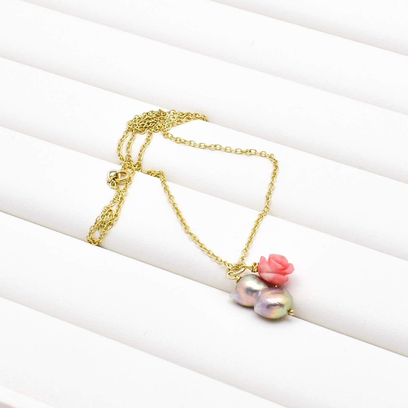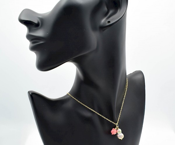 perla de cultura baroque, coral roz, argint 925 aurit