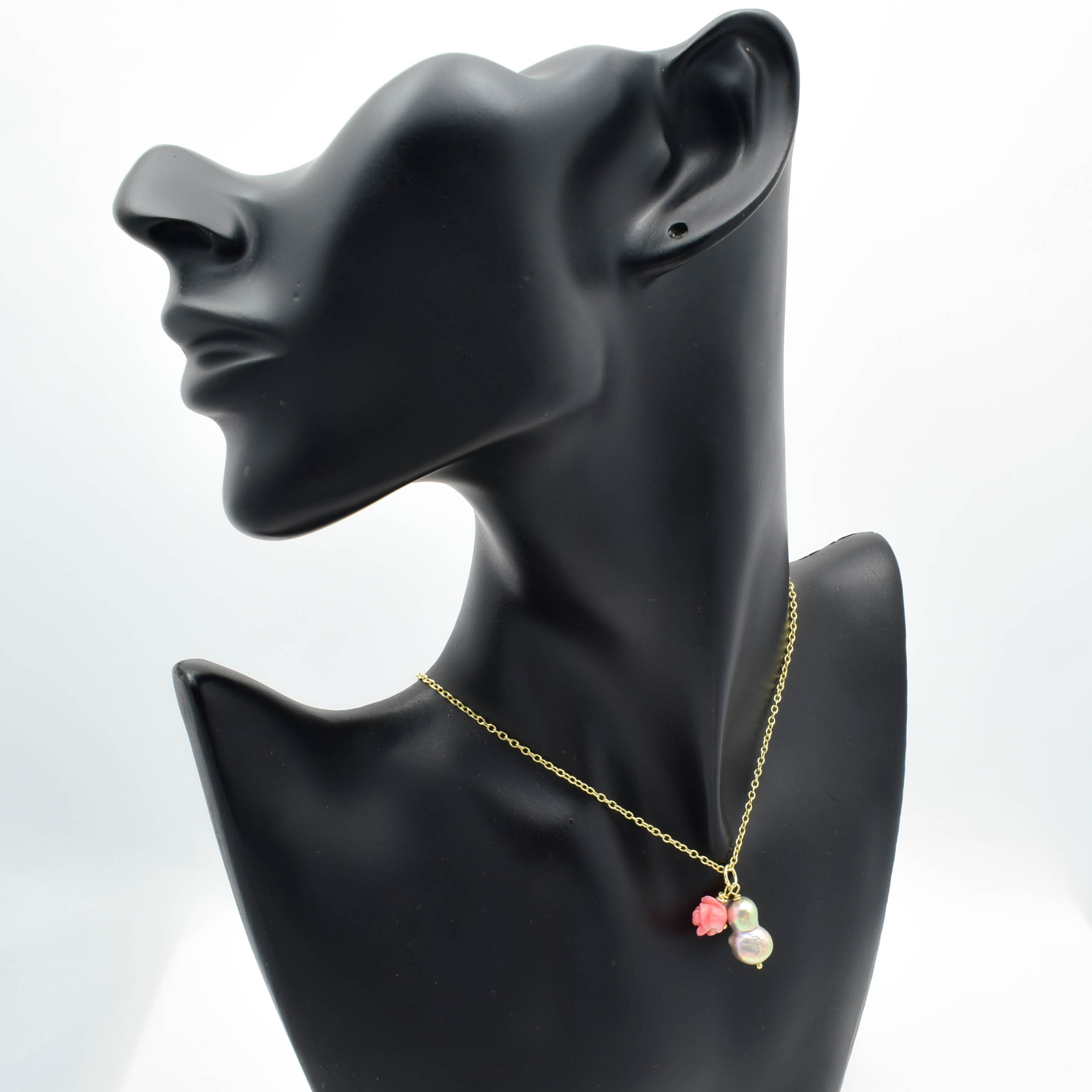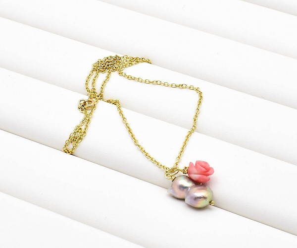Colier din argint 925 aurit cu pandantiv perla de cultura baroque si trandafir corla roz.