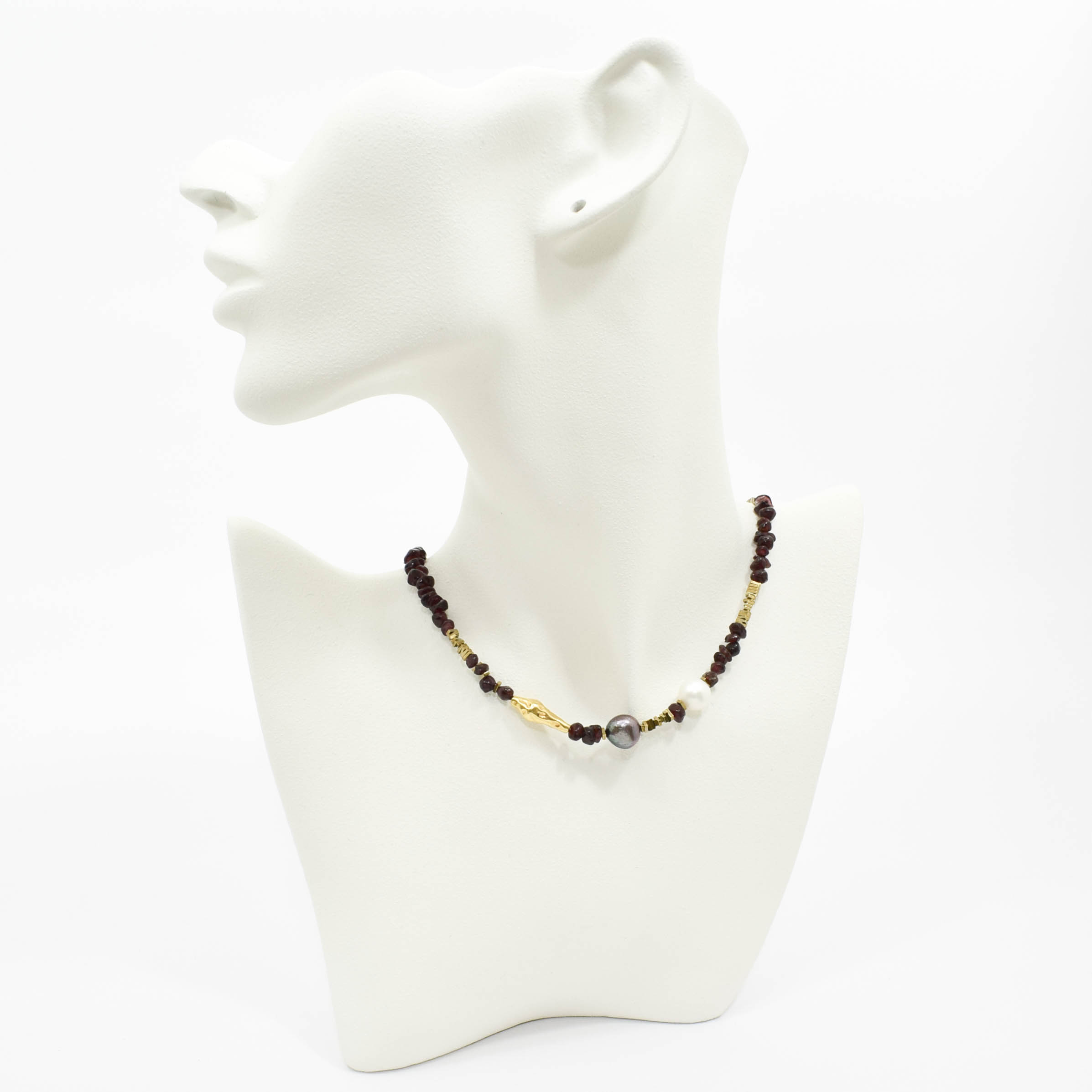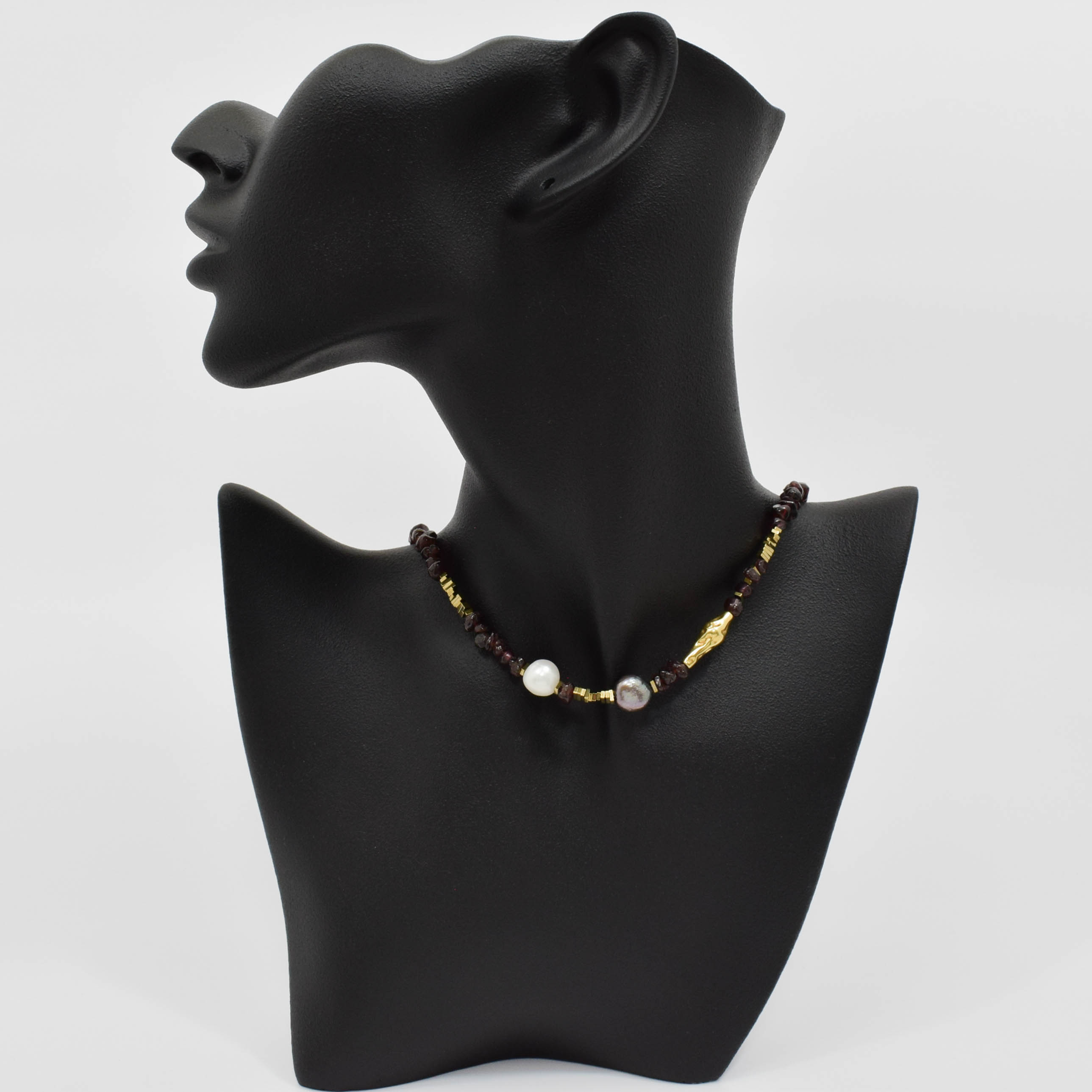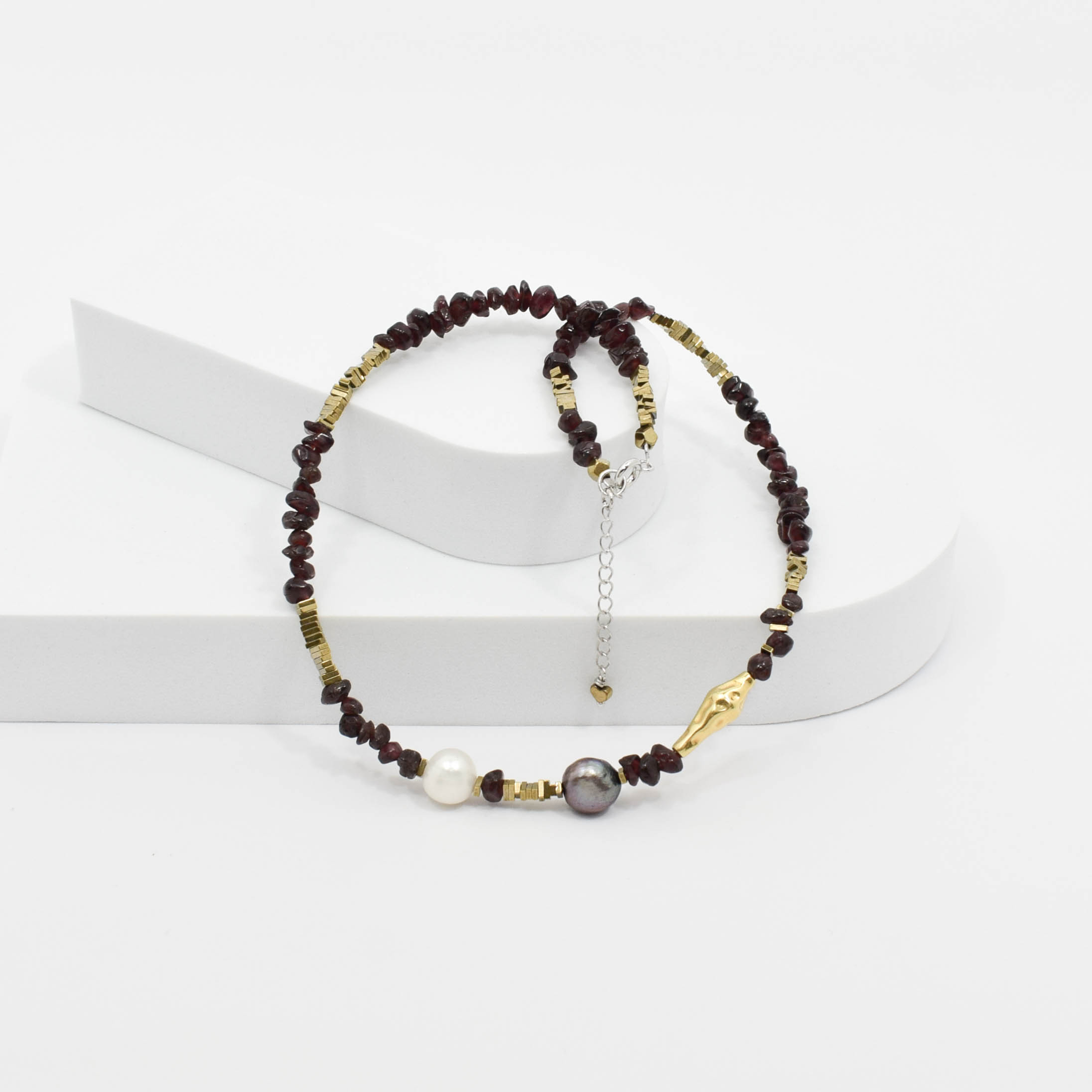 argint 925, granat, perle de cultura diferite nuante, hematit electroplacat