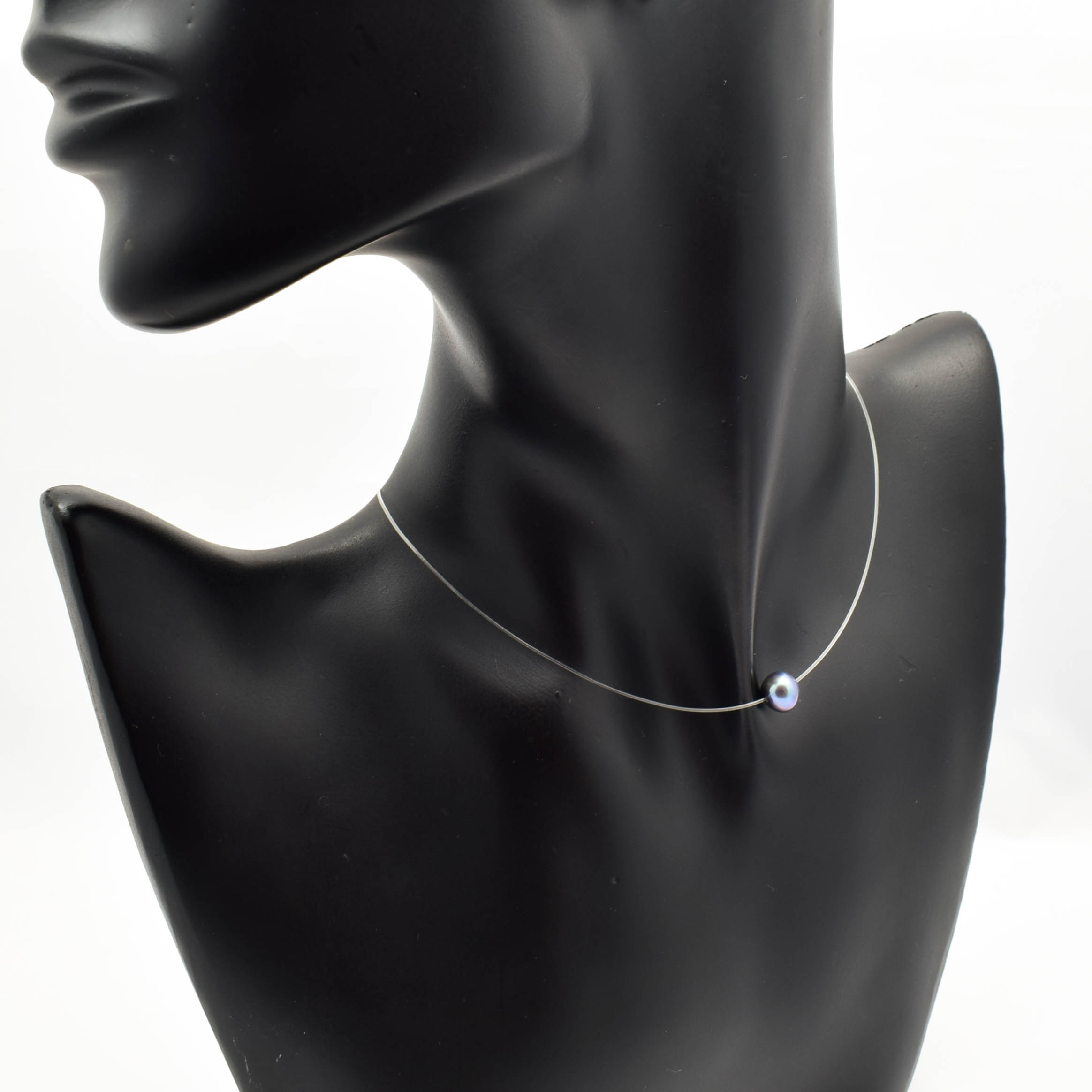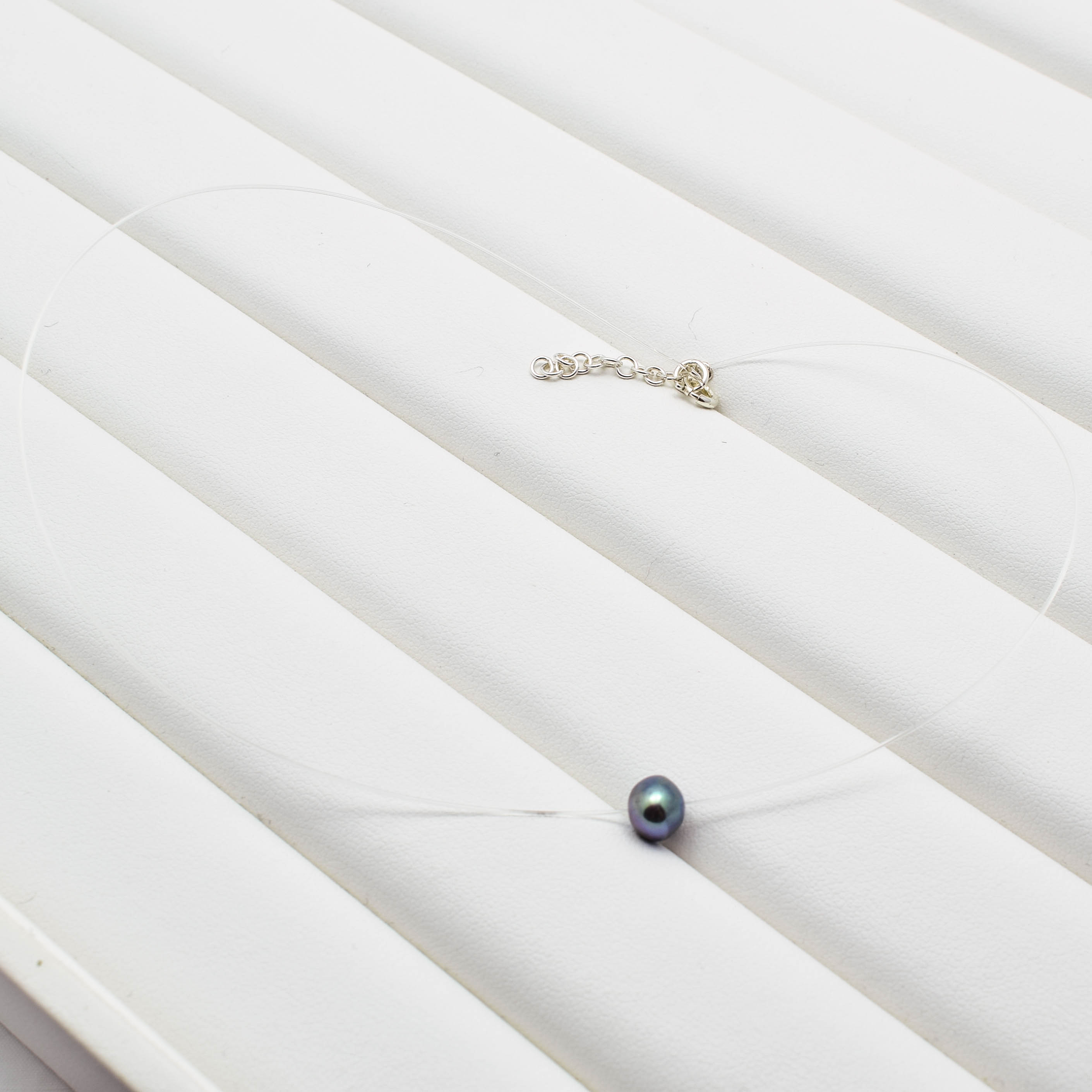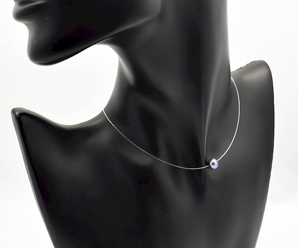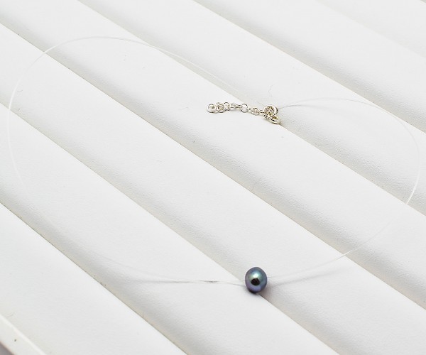 Colier choker din argint 925, guta transparenta si perla de cultura gri petrol.