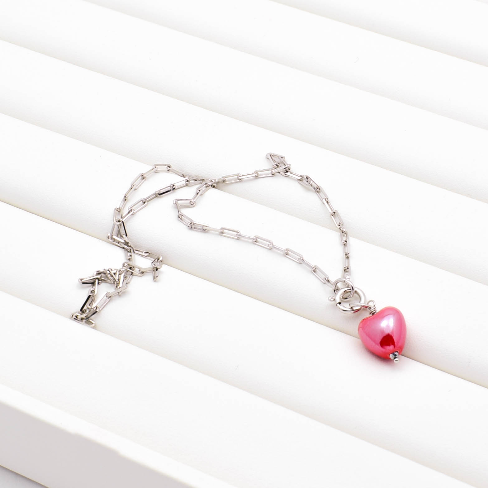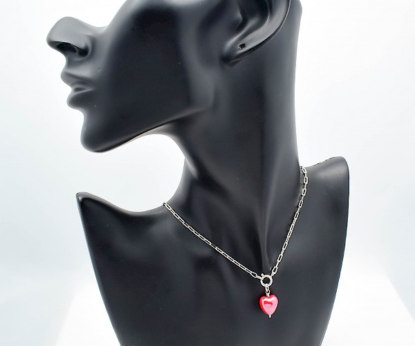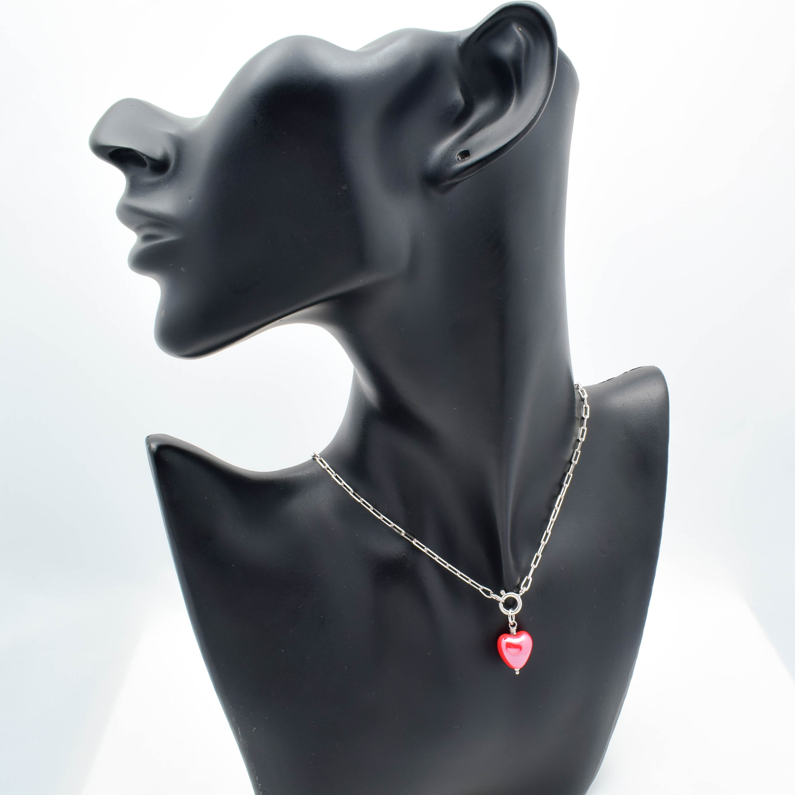 Colier lantisor din argint 925 cu pandantiv inima din portelan.