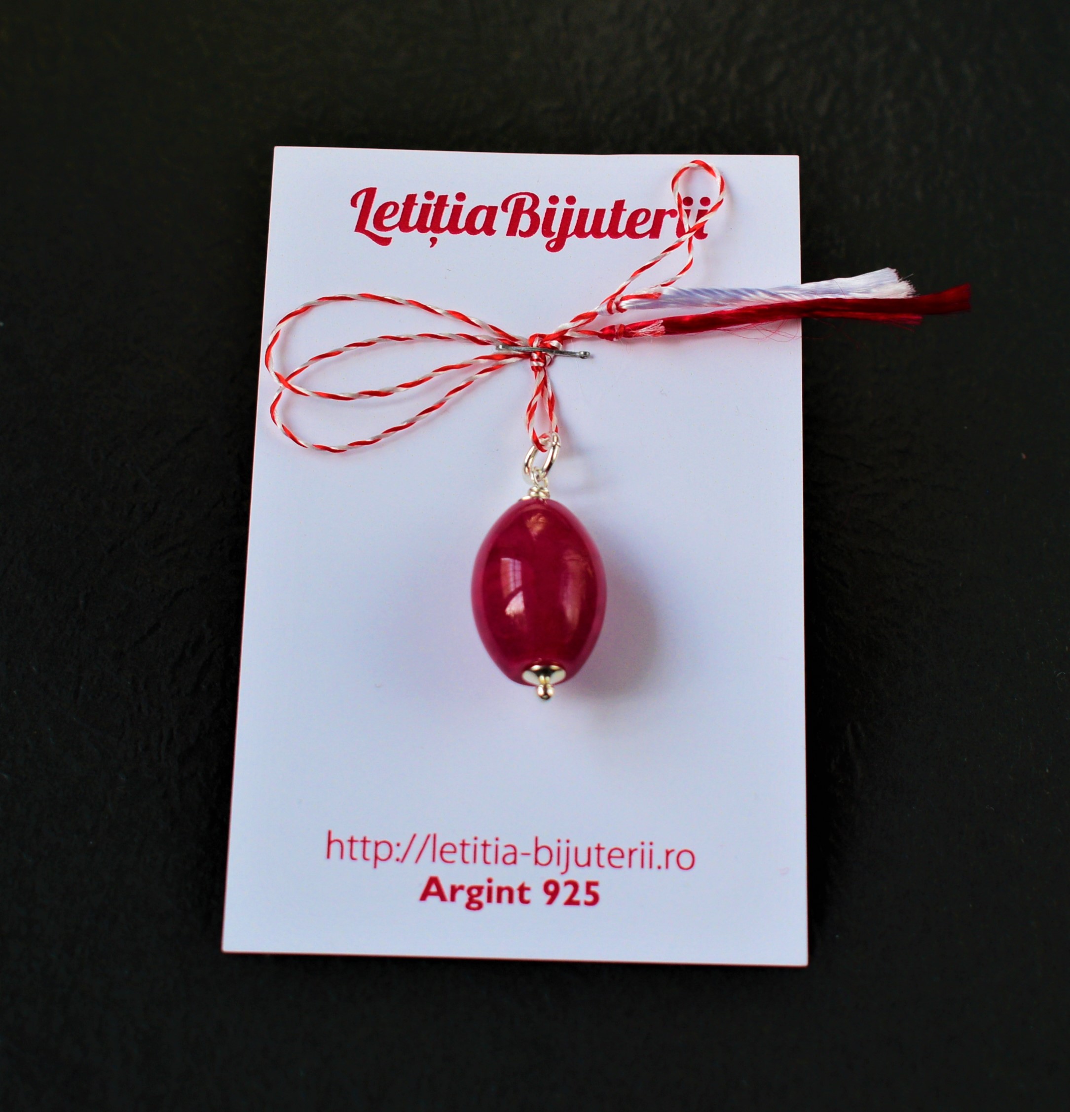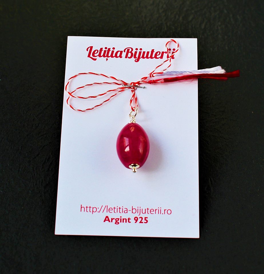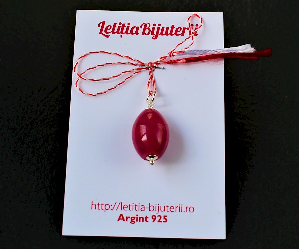Mărțișor din argint 925 si agat. Acesta se livreaza cu snur, prins pe carton si cu plic alb.
