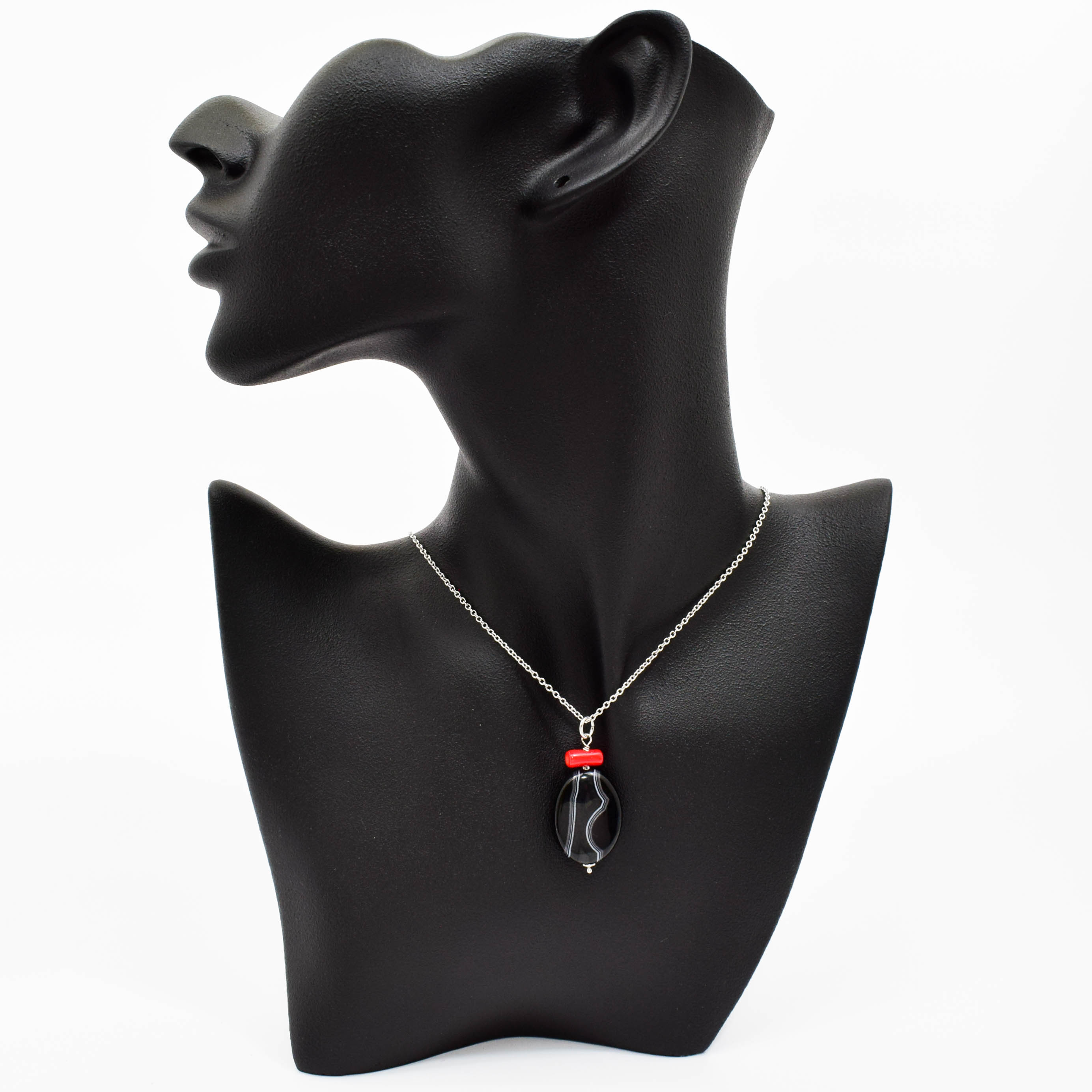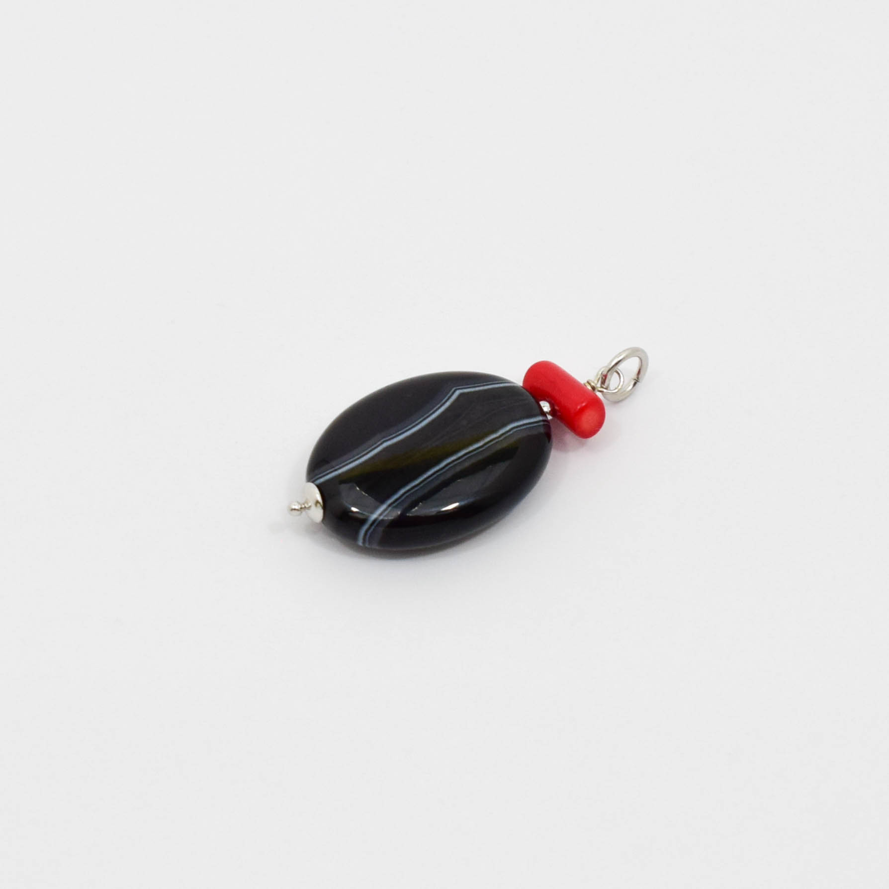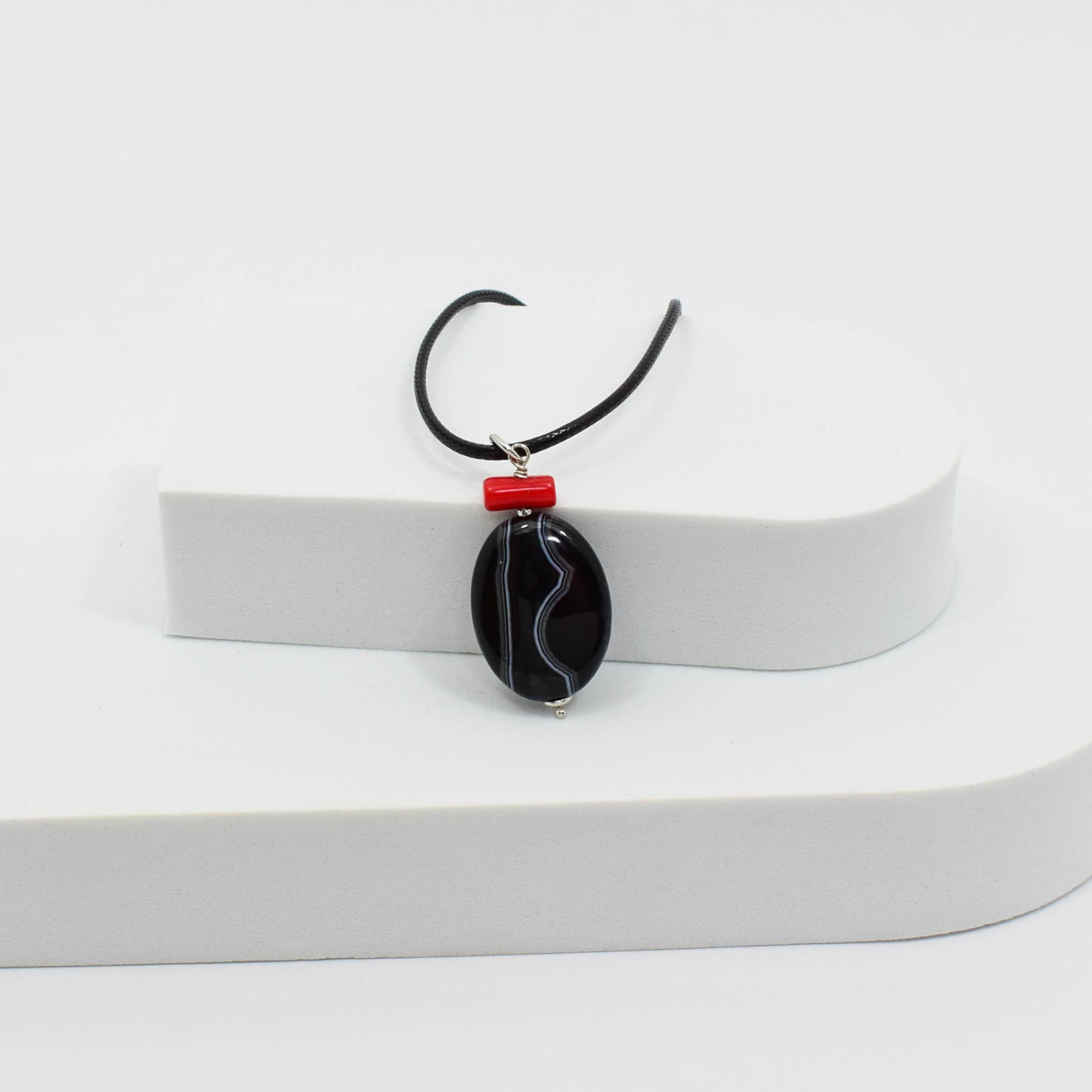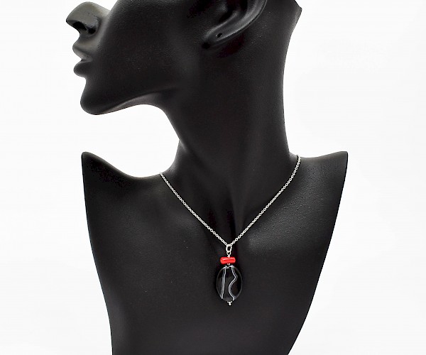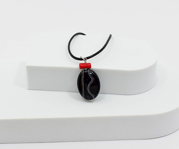Pandantiv cu agat, coral si argint 925. Fiecare piatra semipretioasa, este unica si exista posibilitatea sa apara mici diferente fata de modelul prototip din imagine.