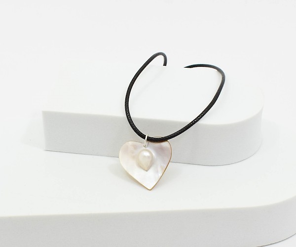 Pandantiv inima din sidef cu perla incastrata si argint 925.