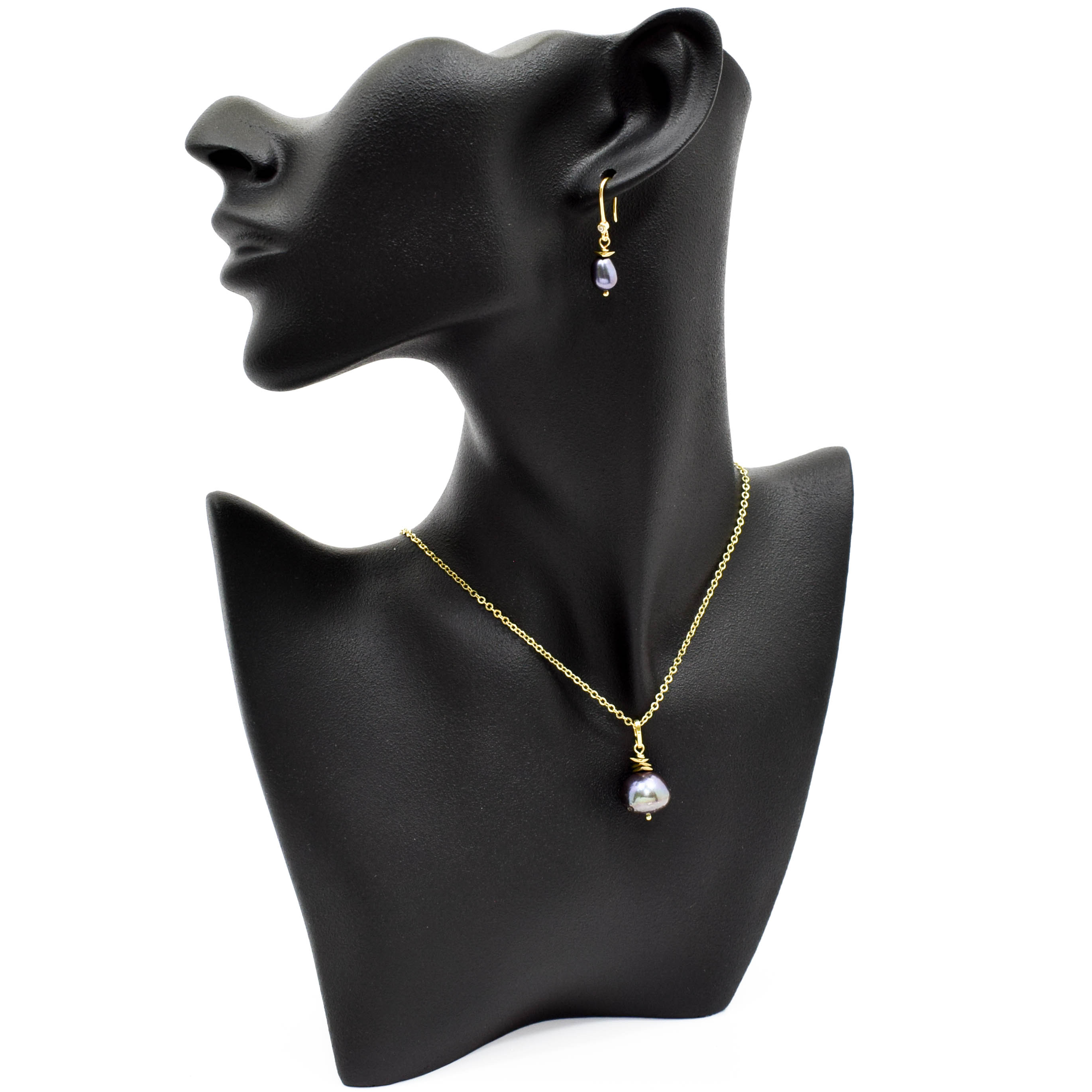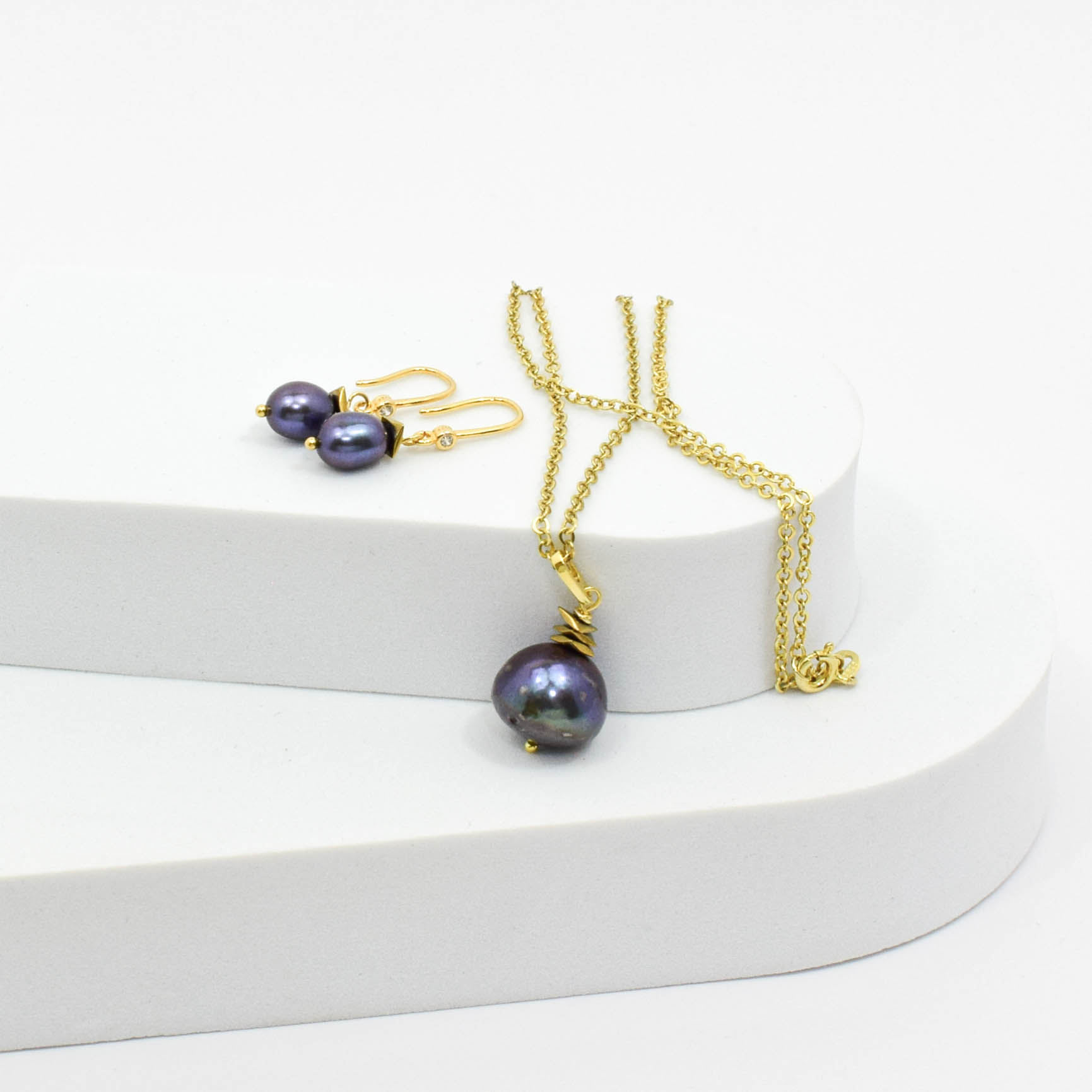 perle de cultura mov, hematit electroplacat, argint 925 aurit