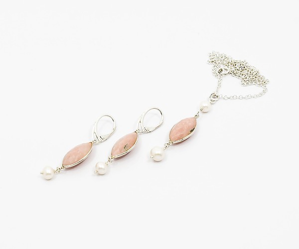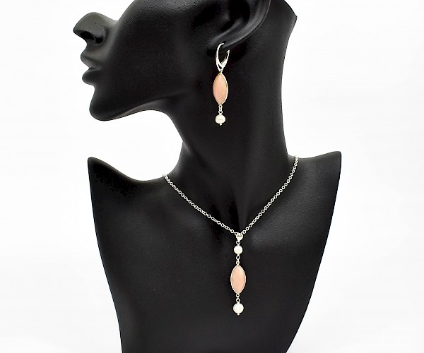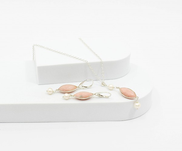 Cercei si pandantiv pe lantisor din argint 925 cu opal si perle de cultura.